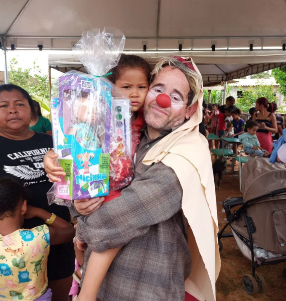 Esta ação social já é desenvolvida há mais de 10 anos pelo palhaço Chicó, de maneira voluntária.